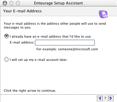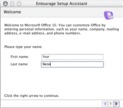 01. Open Entourage. You should be greeted by the Entourage setup wizard.