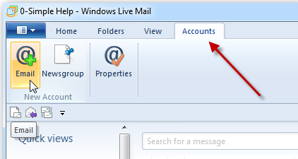 With your Windows Live program open, click the “Accounts” tab on the ribbon and then select “Properties”