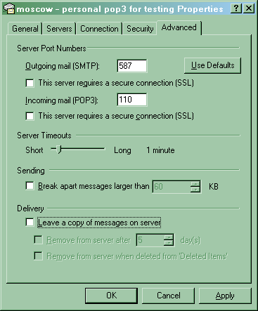 06. Click the Advanced tab and change the Outgoing (SMTP) port number to 587 like so: