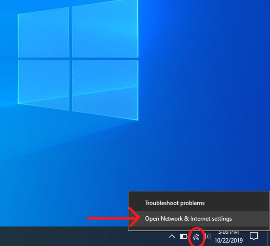 01. Right-click on the Networking Icon on the taskbar. Select "Open Network & Internet settings".