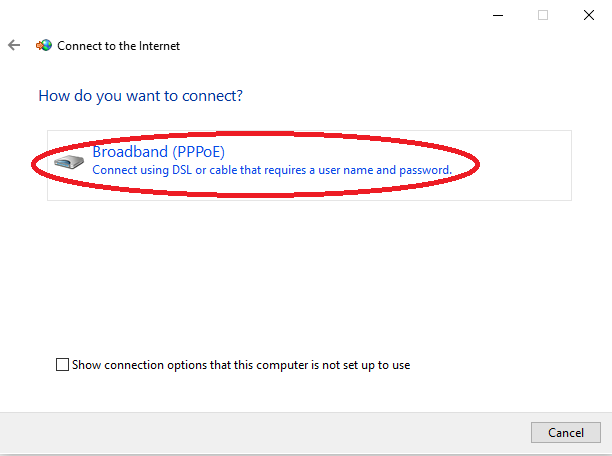 05. When asked "How do you want to connect?" Select the "Broadband (PPPoE), Connect using a DSL or cable that requires a user name and password."
